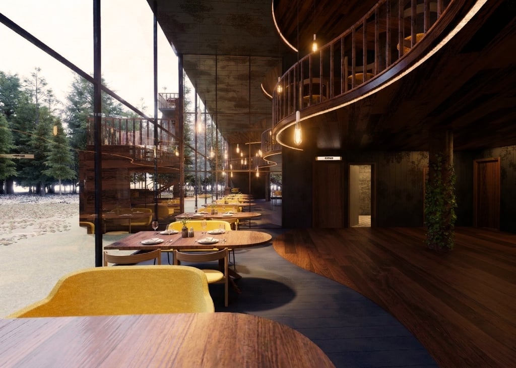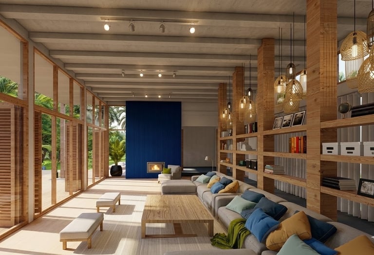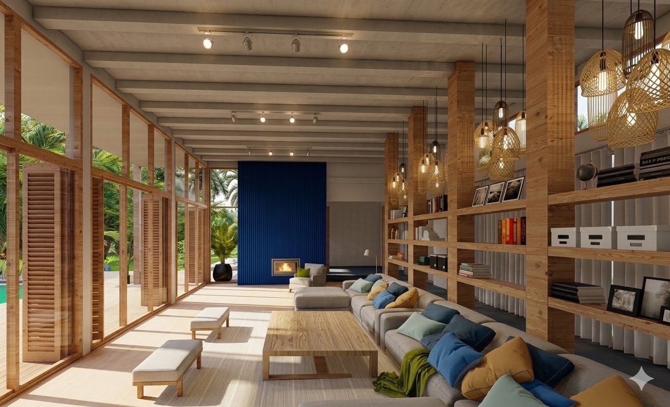 Illuminated Structure: Blending Interior Comfort with Nature.